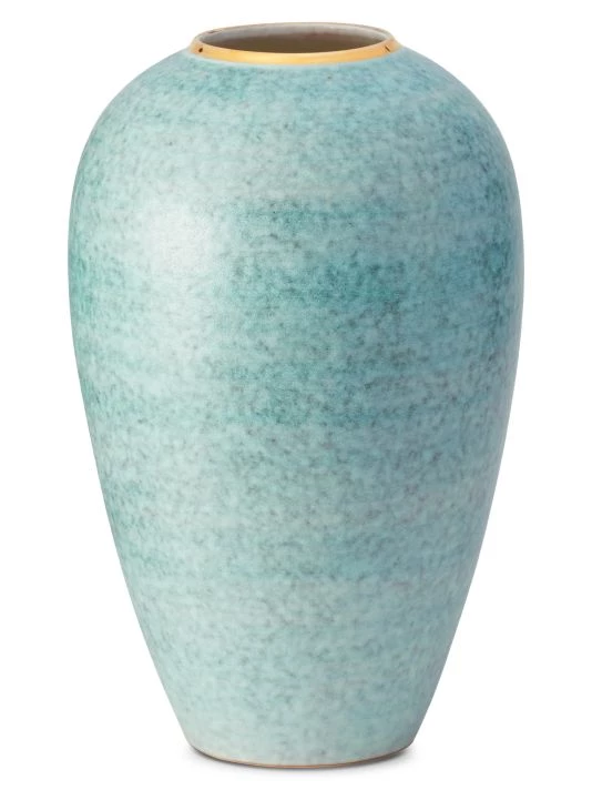 From the Calinda Collection. Crafted into a tapered silhouette, this ceramic vase is accentuated with goldplated accents.