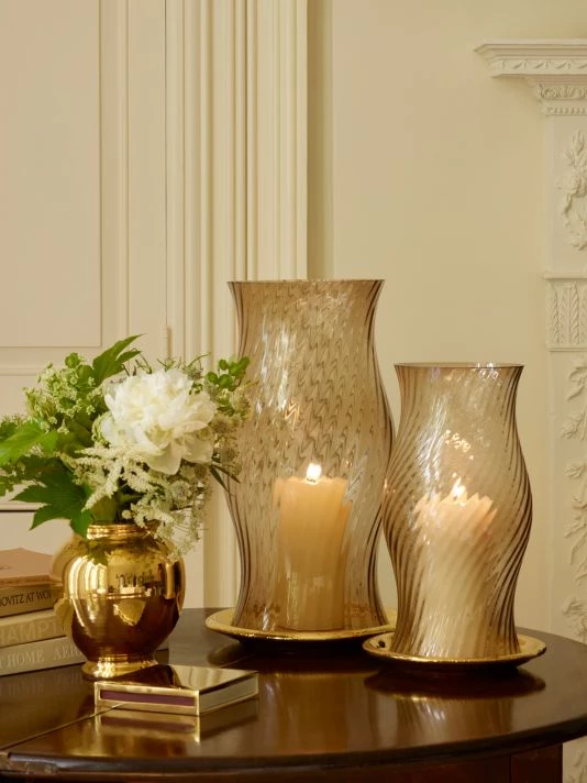 From the Fall 2021 Introduction Collection. This Adirondack and foliage inspired collection focuses on colored glass and jewel tones. Matches in a simple and classic square form in a brass sleeve.