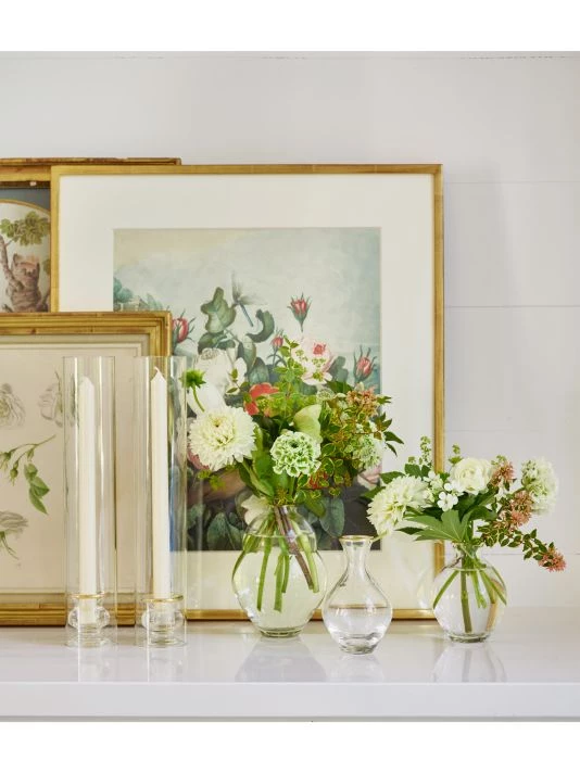 Showcasing a classic silhouette, this clear crystal vase is finished with an 18k gold-painted rim.