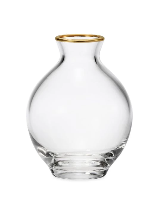 This crystal vase boasts a classic rounded shape accented with a refined 18k gold-painted rim.