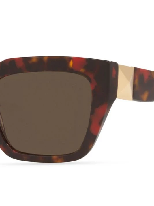 Valentino’s polished sunglasses flaunt a bold square shape. The luxury Italian fashion house finishes this pair with rockstud hinges.