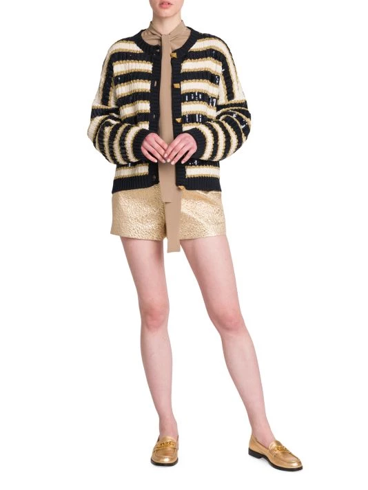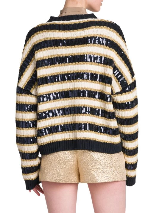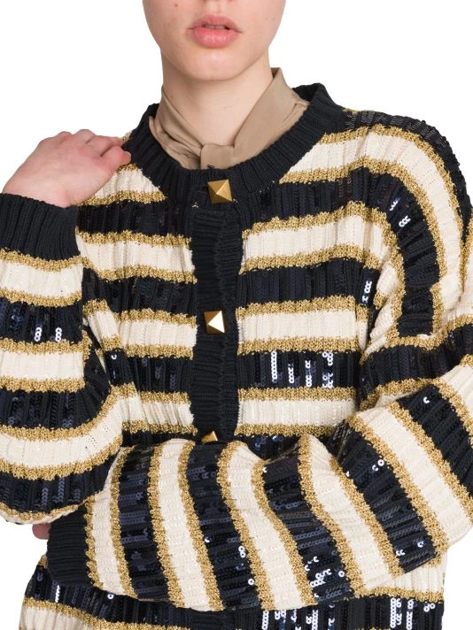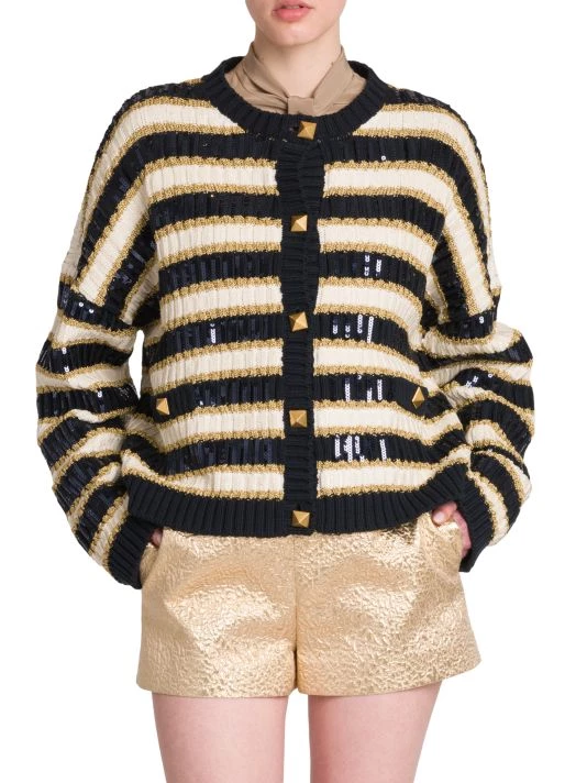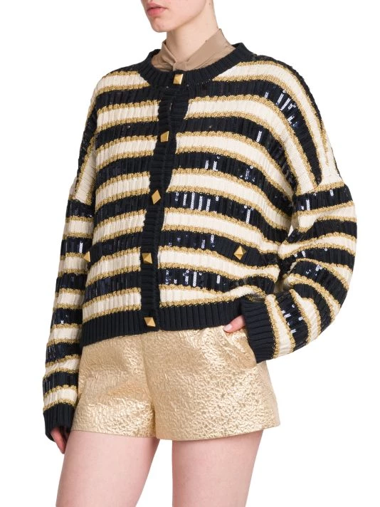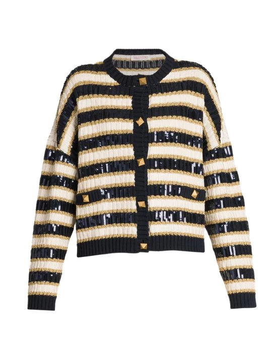 Cut in an boxy fit, Valentino’s striped cardigan boasts sequin embroidery and geometric goldtone button closures.