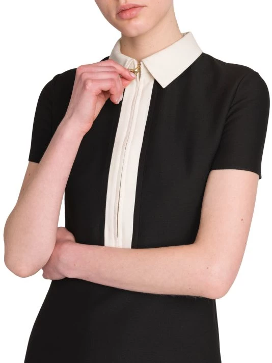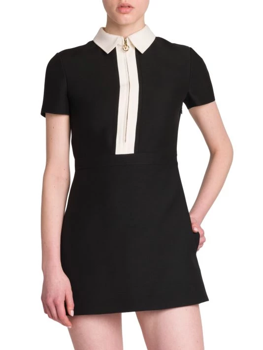 Cut in a polo-inspired silhouette, Valentino’s short-sleeve Crepe Couture minidress is complete with a contrast collar and quarter-zip placket.
