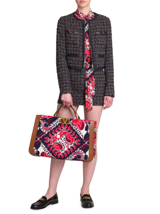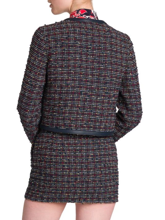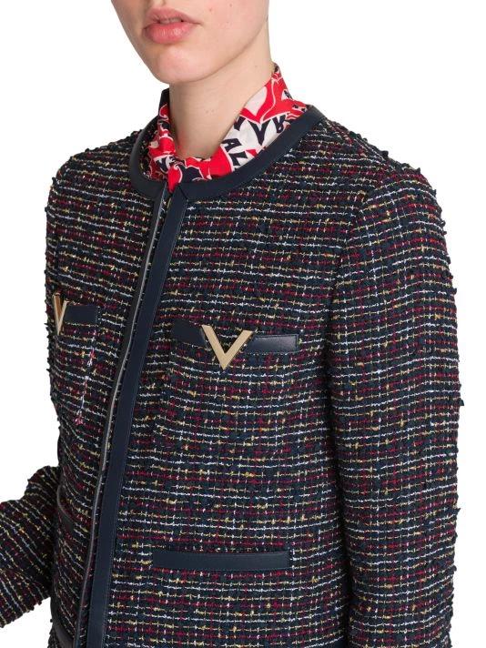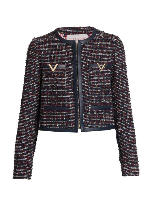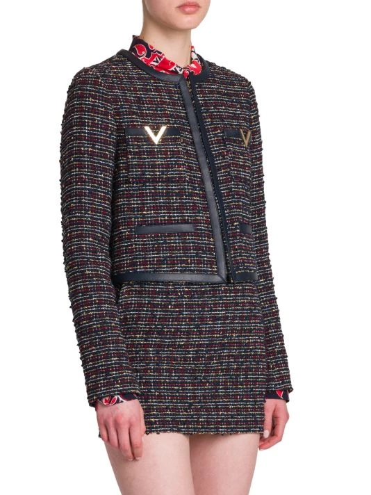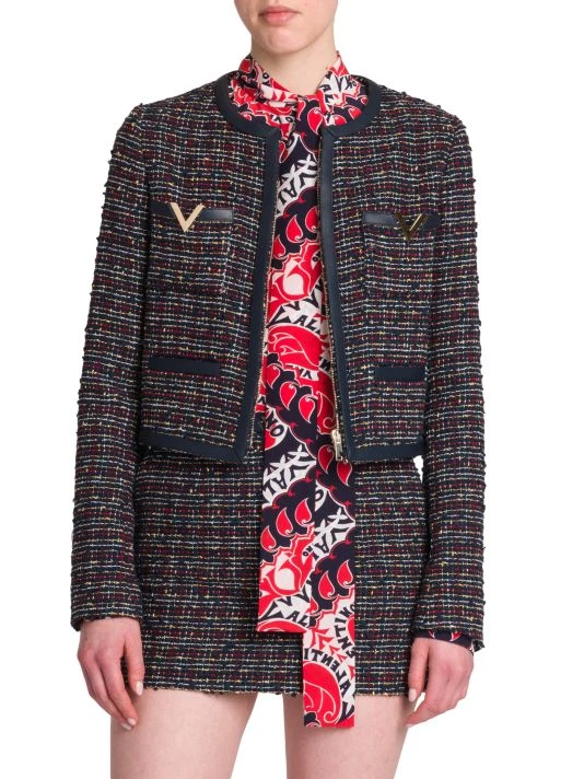 Cut in an ultra-cropped-silhouette, Valentino’s tweed zip-up jacket is elevated by goldtone logo embellishments at the chest patch pockets.