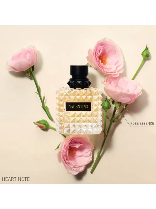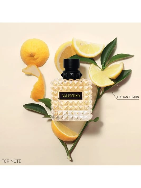 A fresh floral perfume for women twisting energetic Italian lemon with sensual Damascan rose and white musk to create a vivid and luminous fragrance. Fragrance Story: DONNA BORN IN ROMA YELLOW DREAM combines the bright citrus perfume of lemon with a floral scent of a thousand rose petals to paint a scented picture of Rome: a romantic golden light that clashes with a neon attitude. Inspired by the cultures and aesthetics of Rome, the multi-faceted women’s fragrance bottle is designed with the iconic Valentino rockstud, transforming the bottle from classic to edgy, energized by a neon yellow signature echoing the fresh floral women’s fragrance held within. Mood: Energized, feminine, refreshing. 1.7 oz. Made in France.