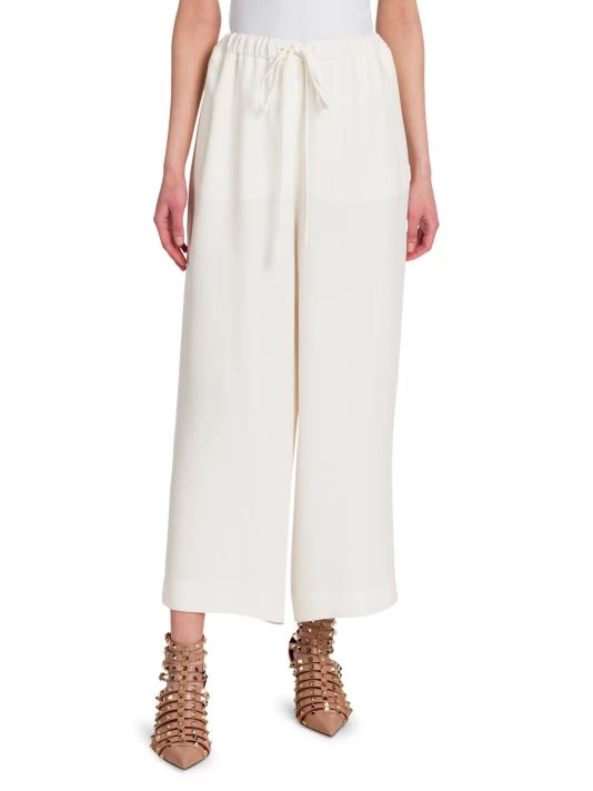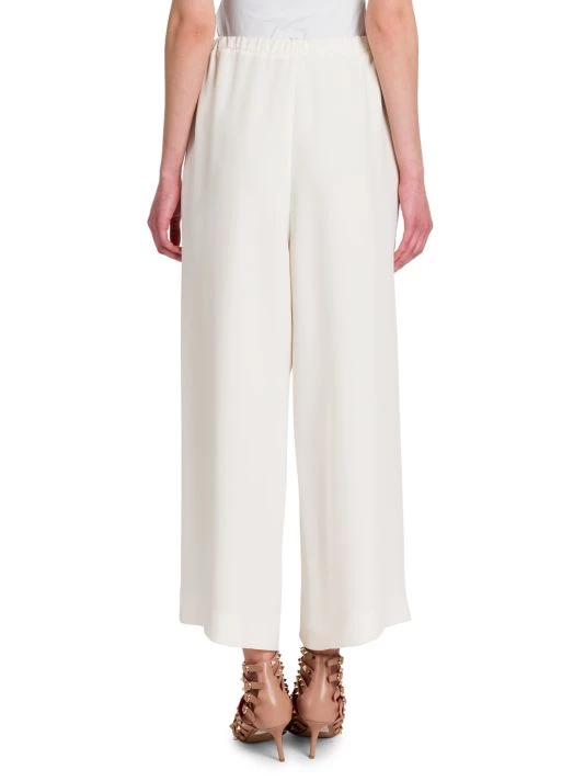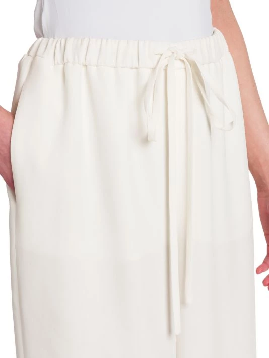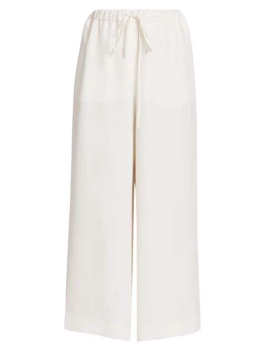 Fluid wide-leg design crafted with a luxurious all silk weave. An effortlessly elegant pant finished with a chic drawstring waist.
