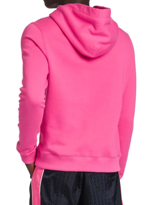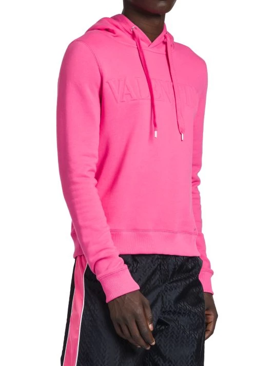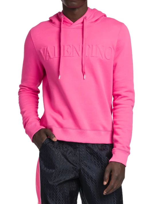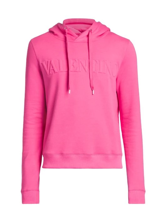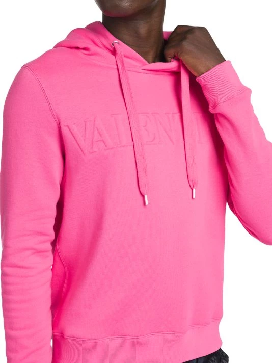 Valentino’s Creative Director Pierpaolo Piccioli plays with an electric palette, billowing silhouettes, and silk fabrics in his most recent collection. With an obvious ode to the label’s history, Piccioli blends embroidery, micro-shorts, and gender-fluidity into garments that successfully speak to both tradition and Gen Z. This cotton sweatshirt features a drawstring hood and long sleeves with ribbed cuffs, and is finished with the brand’s logo embossed on the chest.
