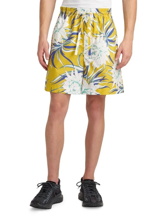 In a floral print, these cotton shorts tie with a drawstring waistband.