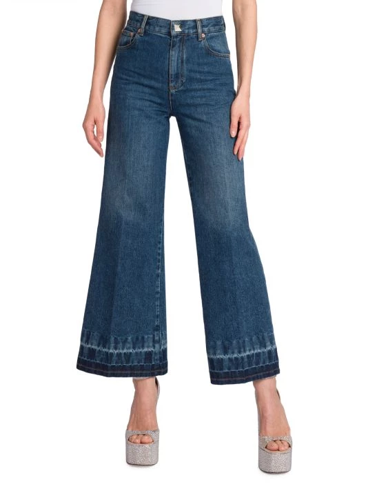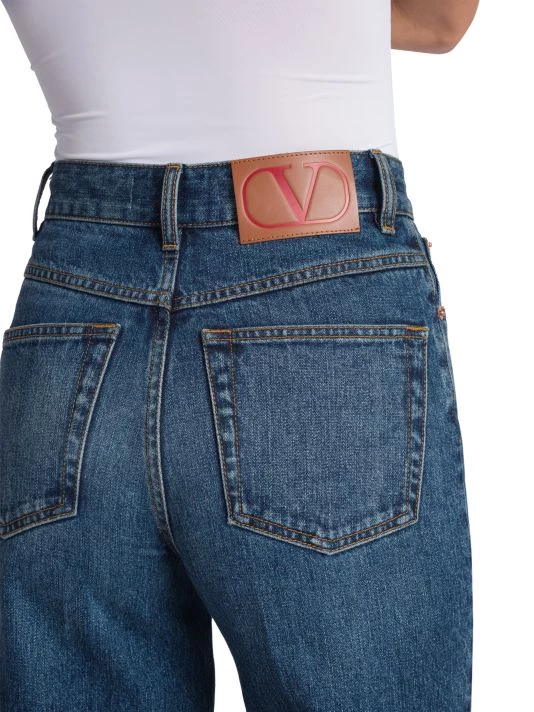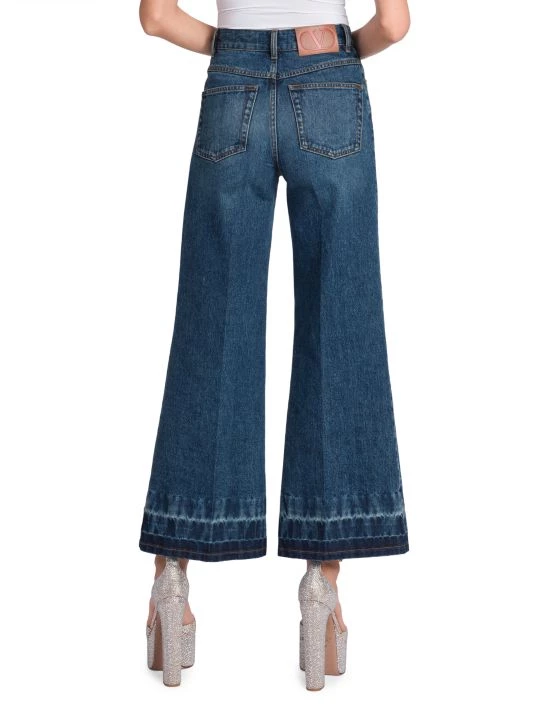 Cut in a wide-leg silhouette, Valentino’s high-rise jeans are elevated by unique whiskering at the hem.