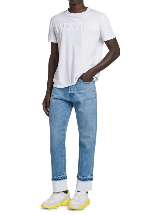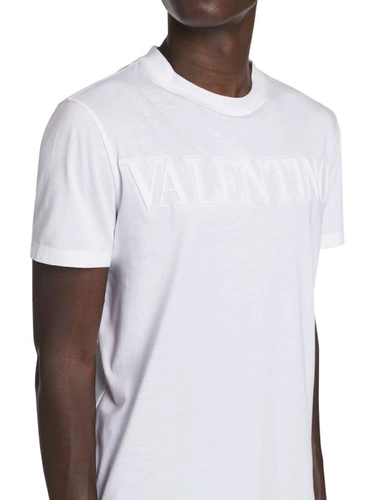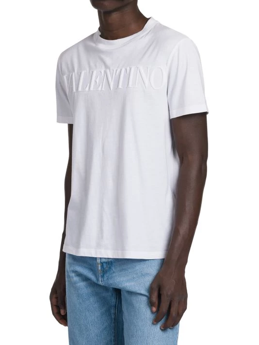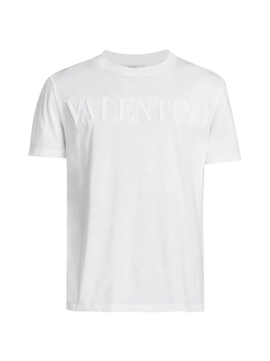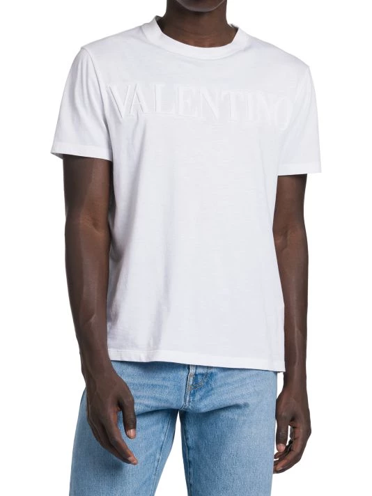 Valentino’s Creative Director Pierpaolo Piccioli plays with an electric palette, billowing silhouettes, and silk fabrics in his most recent collection. With an obvious ode to the label’s history, Piccioli blends embroidery, micro-shorts, and gender-fluidity into garments that successfully speak to both tradition and Gen Z. This cotton T-shirt features the brand’s logo embossed on the chest.