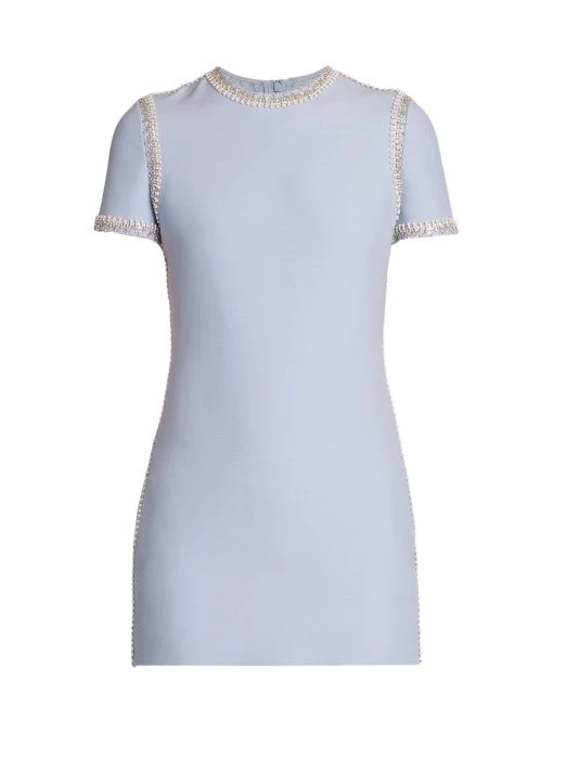 Cut in a form-fitting silhouette, Valentino’s minidress is elevated by intricate imitation pearl trim. This Italian-made piece is accented with short sleeves and pockets.