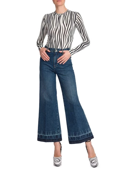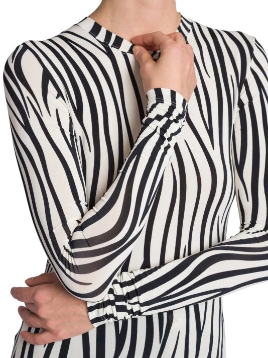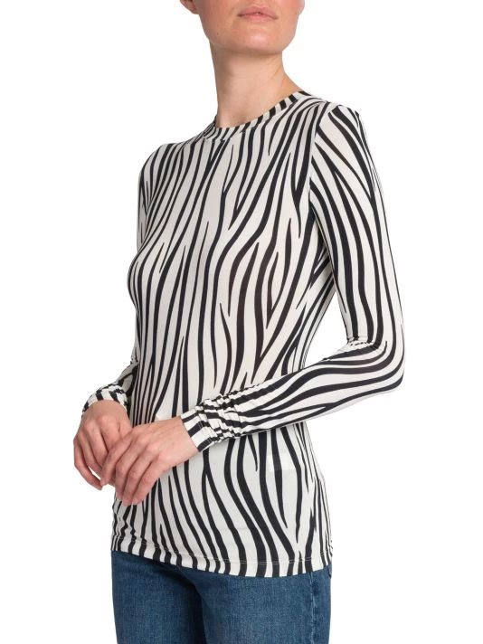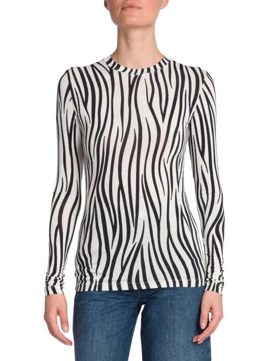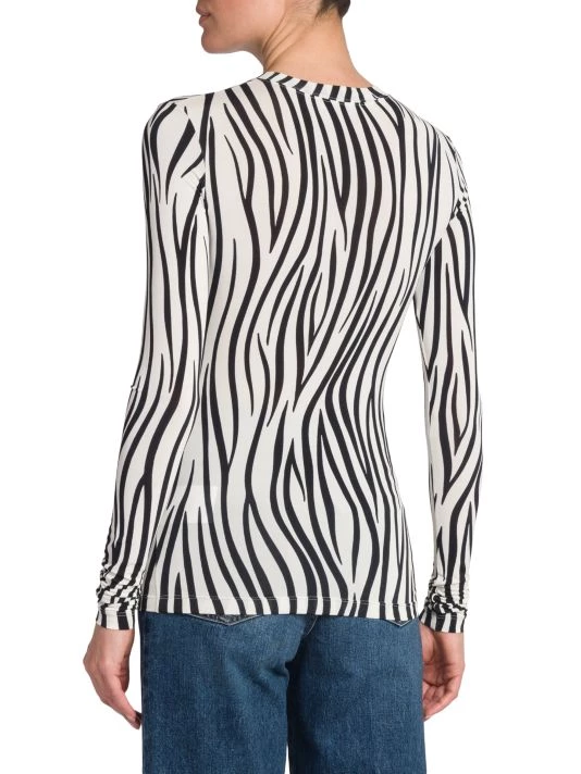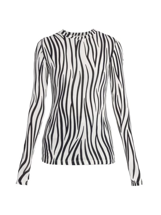 Cut in a formfitting silhouette, Valentino’s long-sleeve top is defined by a playful zebra-inspired print.