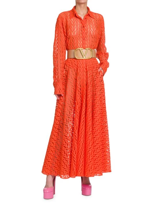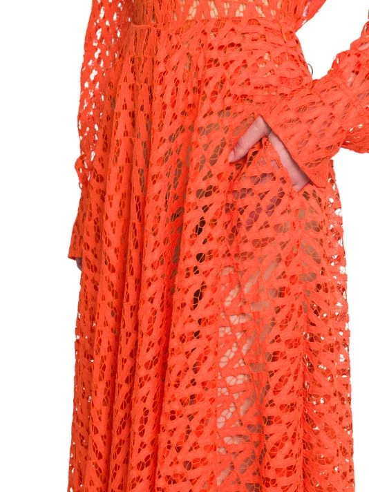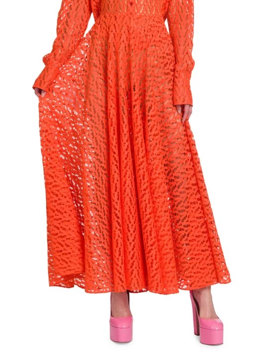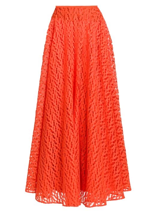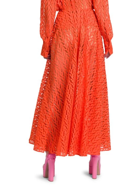Pleated midi-skirt with defining intricate openwork detailing.