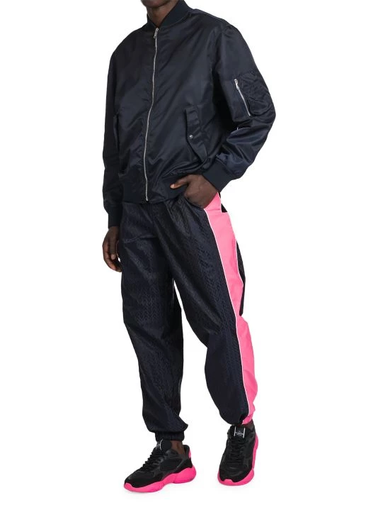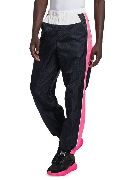 Valentino’s Creative Director Pierpaolo Piccioli plays with an electric palette, billowing silhouettes, and silk fabrics in his most recent collection. With an obvious ode to the label’s history, Piccioli blends embroidery, micro-shorts, and gender-fluidity into garments that successfully speak to both tradition and Gen Z. These sweatpants feature an elastic waistband and side slip pockets.