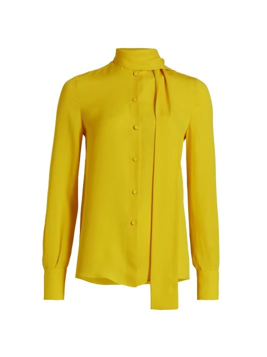Silk chiffon blouse with a draped self-tie neck.