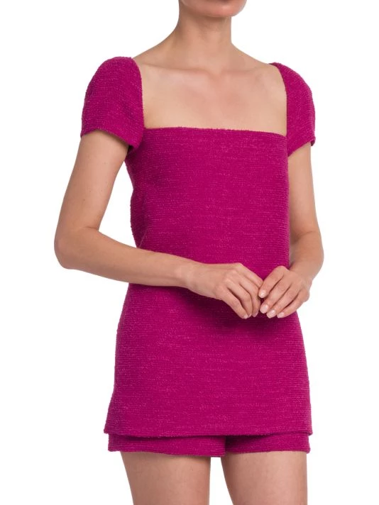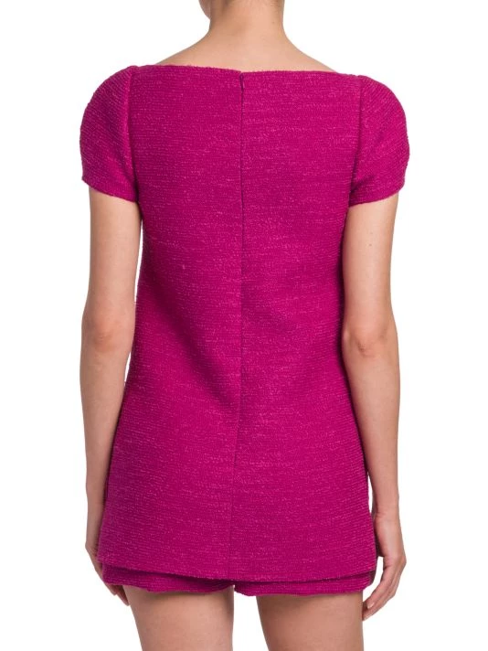 Tweed romper in a mock layered silhouette with a wide squareneck.