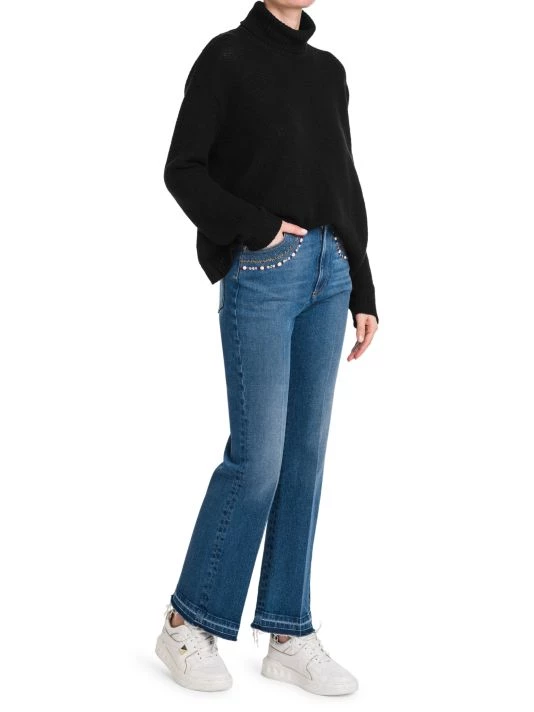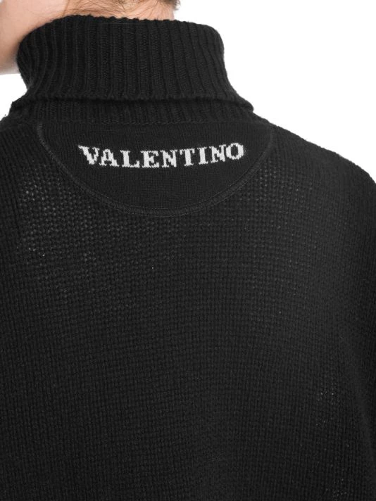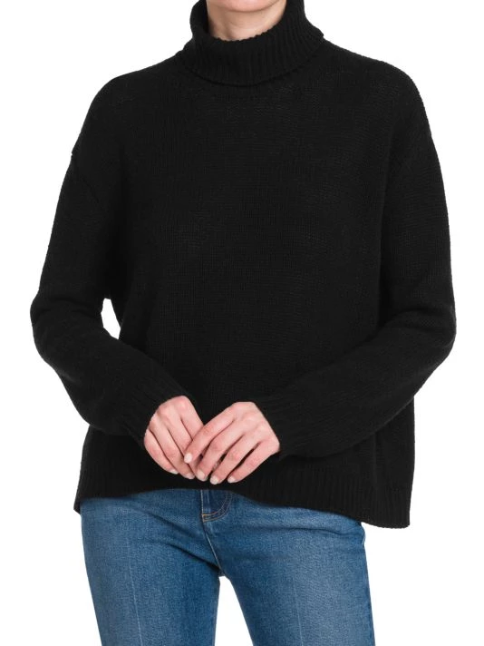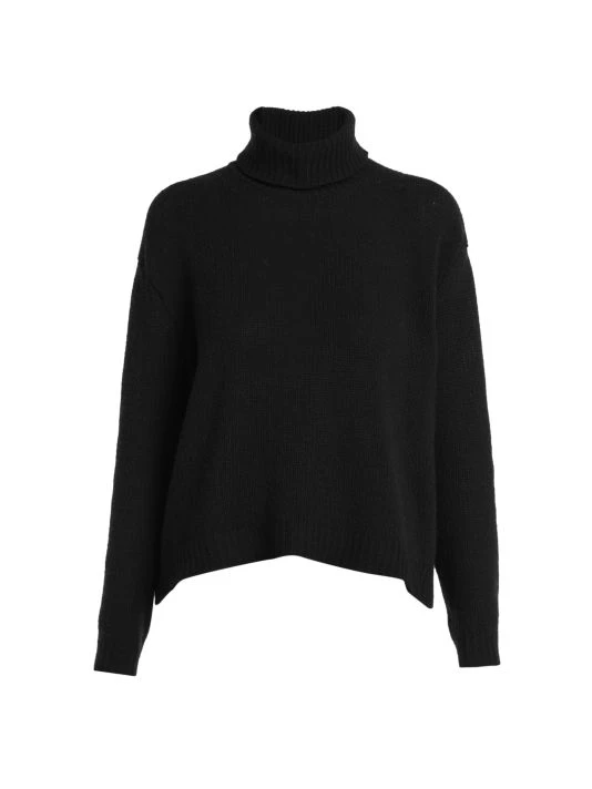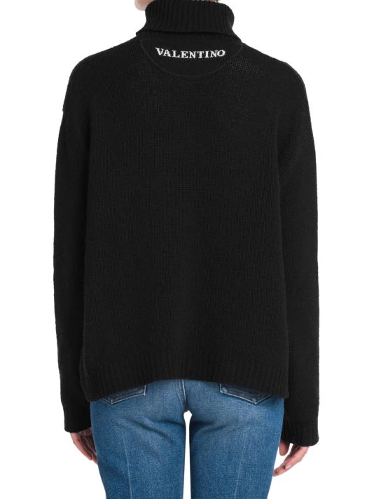 Cashmere turtleneck sweater with contrast brand embroidery at back neck.