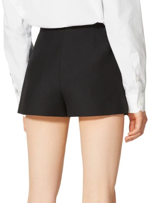 Pleated virgin wool shorts in a skirt-inspired silhouette.