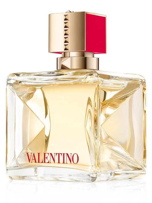 VOCE VIVA is a luxury perfume with a bottle that conveys the values of Maison Valentino and the VOCE VIVA femininity. Its sleek block of glass, square and notched on the sides, reveals the light passing through this ladies’ perfume golden-hued scent allowing a V of light to emerge. The elegant perfume for women is designed with an emblematic Valentino Rock stud to highlight the cap and collar and to portray a modern edgy personality. It is an iconic Valentino fragrance with a bottle that is signed by a vibrant red. 3.4 oz. Made in France.
