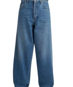 Designed with a dramatic oversized shape, these denim pants have a wide-leg silhouette with logo detailing at the back.